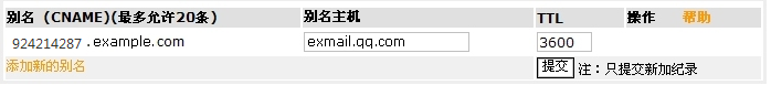 主机记录值为:客服所提供的编码924214287,指向exmail.qq.com。
